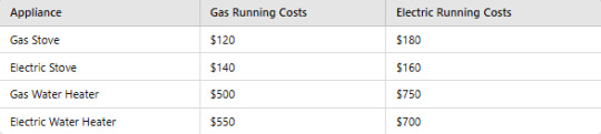 As you can see, gas appliances generally have lower running costs. However, the installation fees and regular maintenance might push the cost up in the long run.